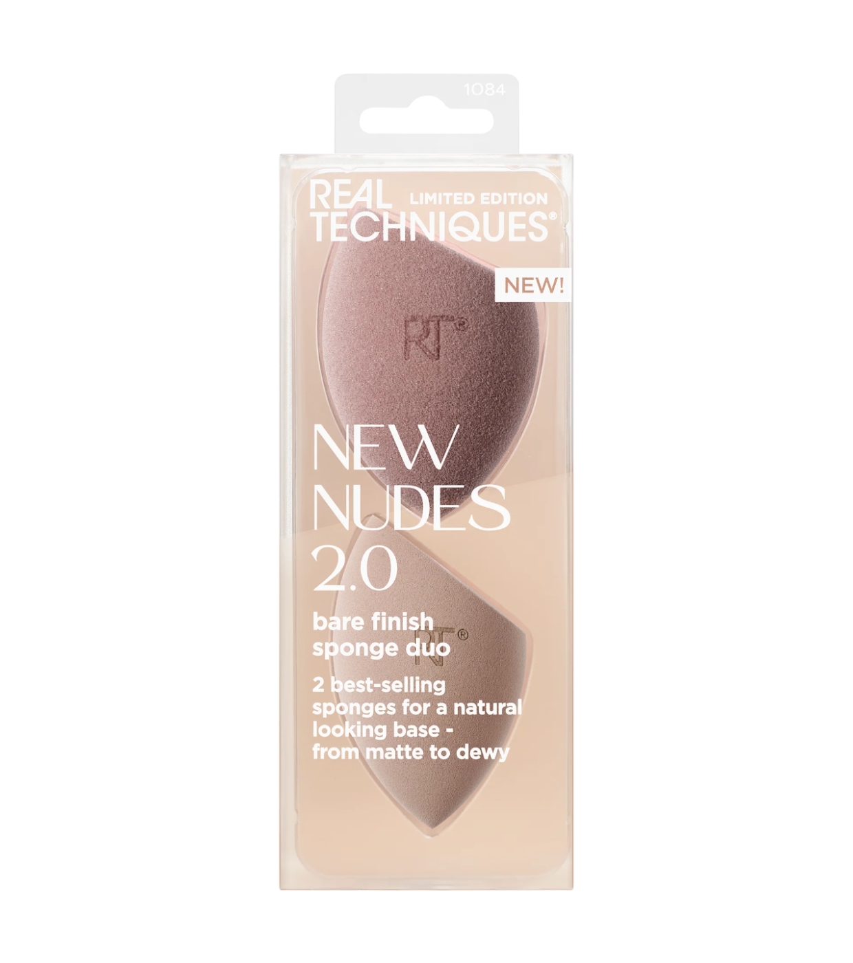 Il duo di spugne New Nudes 2.0 Bare Finish Sponge Duo di Real Techniques unisce due delle spugne più iconiche del marchio per ottenere una base impeccabile, da una finitura opaca a una luminosità radiosa.