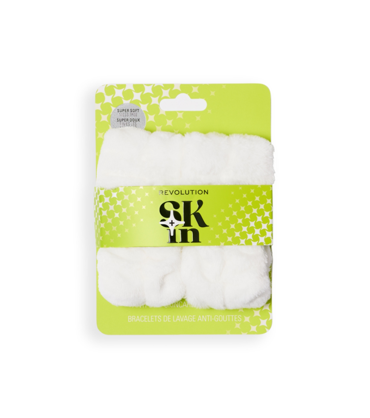 Migliora la tua routine quotidiana di cura della pelle con questi morbidi e soffici braccialetti in microfibra Anti-Drop di Revolution Skin , appositamente progettati per raccogliere le gocce d'acqua e mantenere le tue braccia pulite durante il lavaggio.