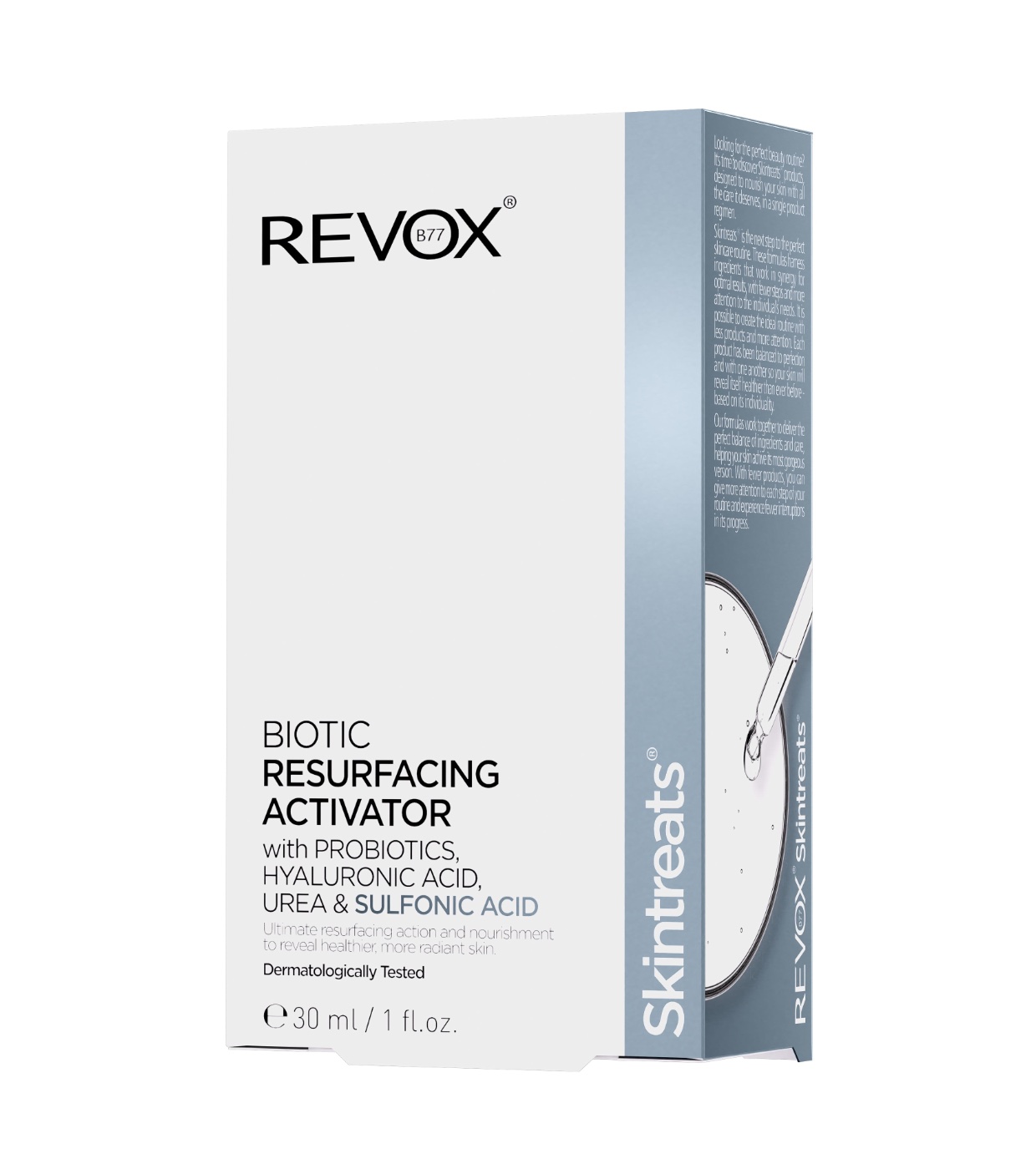 Siero esfoliante riparatore Biotic Resourfacing Activator della linea Skintreats di Revox.