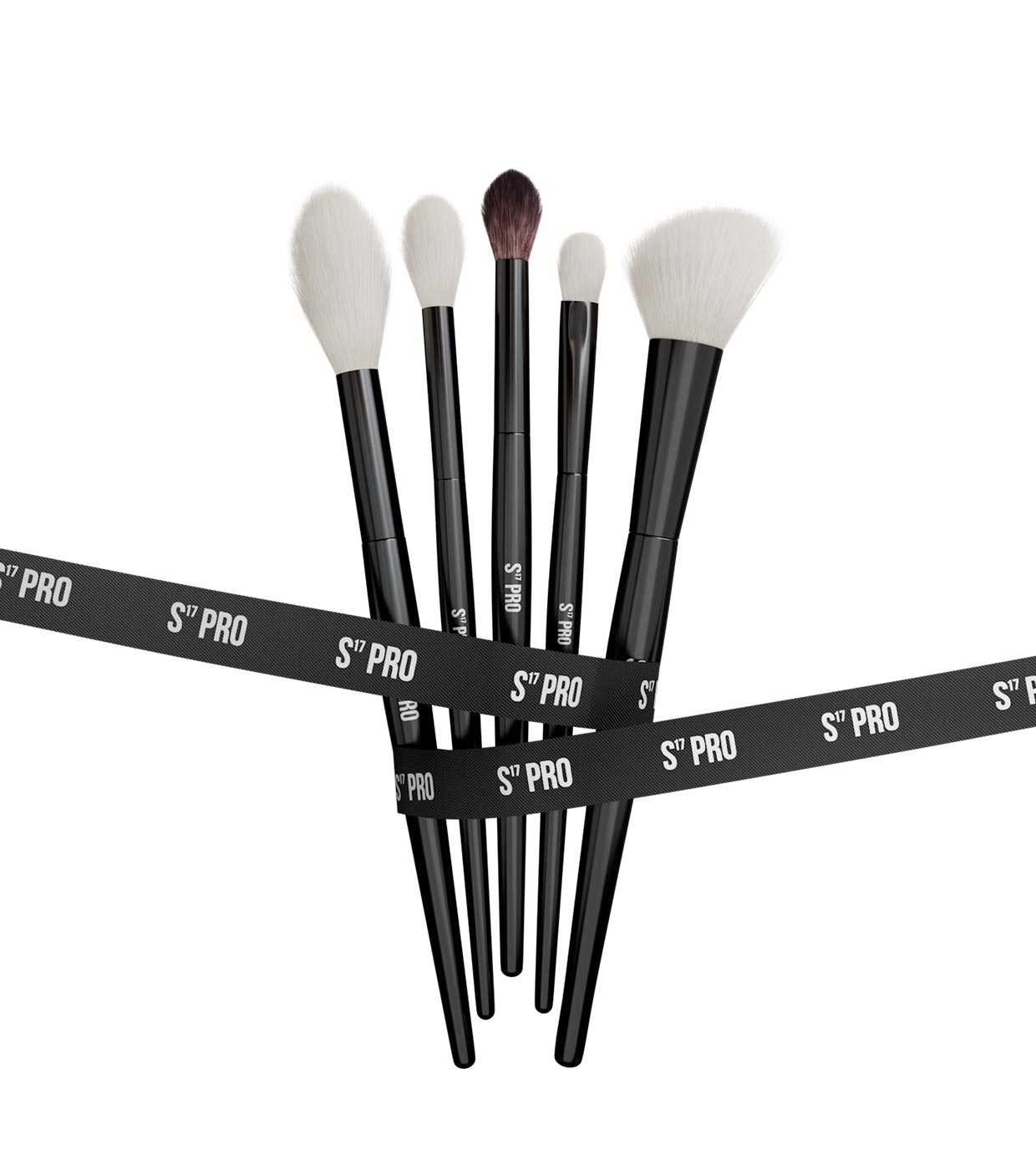 Set di 5 pennelli professionali con bordi arrotondati, morbidi e soffici, pensati per l'applicazione di prodotti in crema e in polvere.