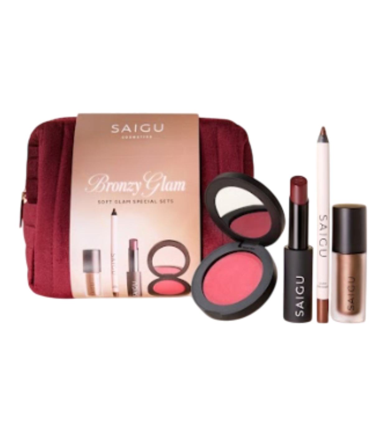 Il pacchetto Bronzy Glam di Saigu Cosmetics unisce la dolcezza dello stile Cherry Girl a un tocco bronzeo che aggiunge profondità ed eleganza al look.