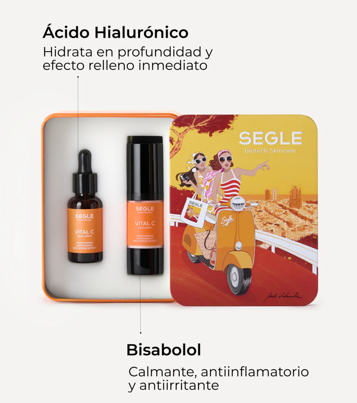 Rivitalizza il tuo viso con il Vital C Pack di Segle , una soluzione antiossidante e illuminante completa presentata in un'esclusiva edizione limitata illustrata da Jordi Labanda.