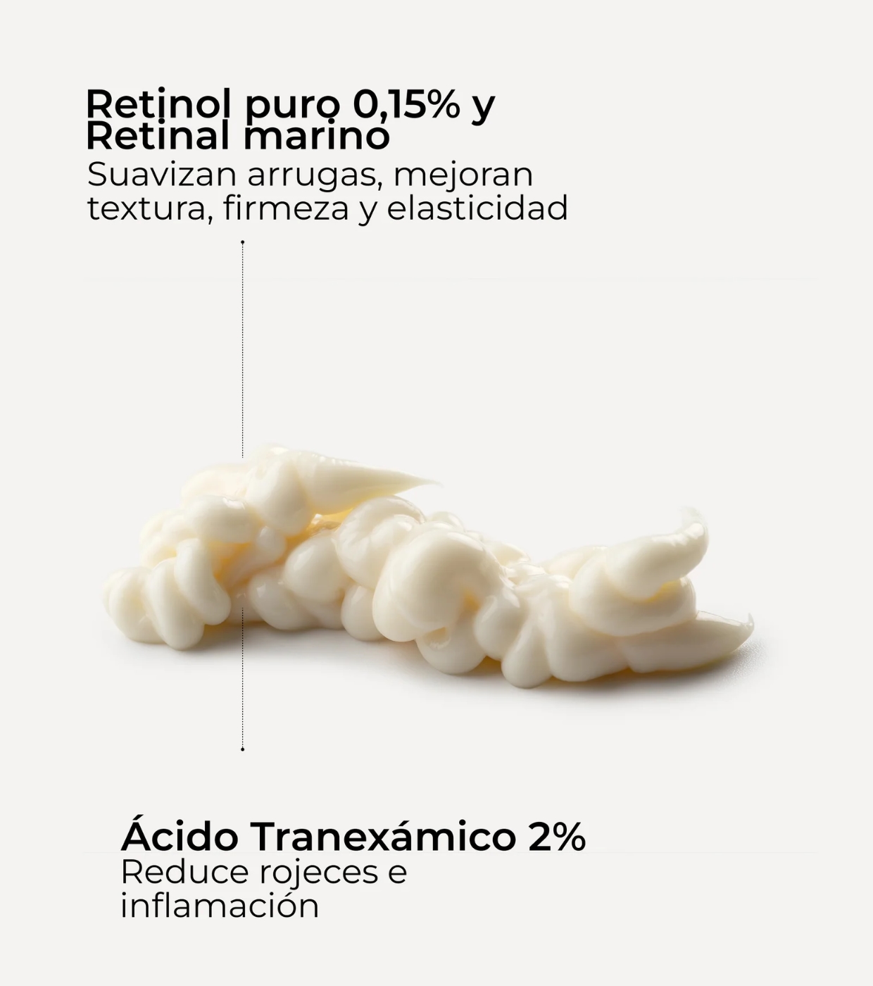 - 1 x CONTORNO OCCHI RETINOLO PURO (15 ml): Contorno occhi notte con retinolo liposomiale puro allo 0,15% e retinale marino all'1%; con acido tranexamico, caffeina, estratti decongestionanti, ceramidi e vitamina E; tratta rughe, borse e occhiaie vascolari e pigmentate. Alta tollerabilità.