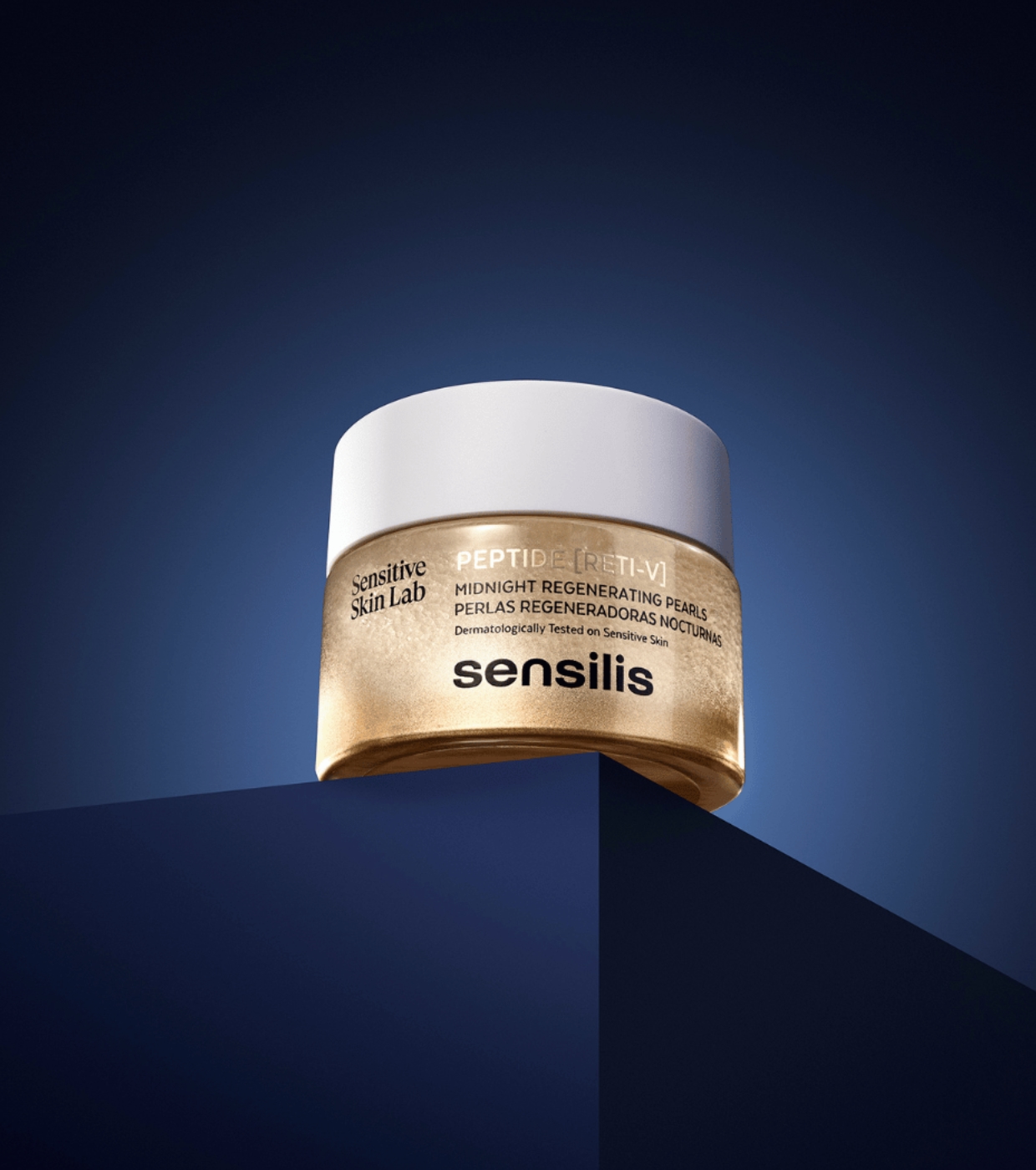 Peptide Reti-V di Sensilis è un trattamento anti-età avanzato formulato per pelli sensibili, che combina retinolo vegetale (bakuchiol) con peptidi e principi attivi neurocosmetici per agire in profondità durante la notte, un momento chiave per la rigenerazione della pelle.