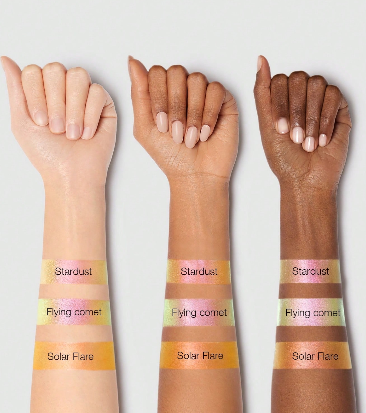 Pelle radiosa con riflessi scintillanti e un finish futuristico che porta la tua luminosità a un livello superiore. Preparati a far girare la testa a tutti.