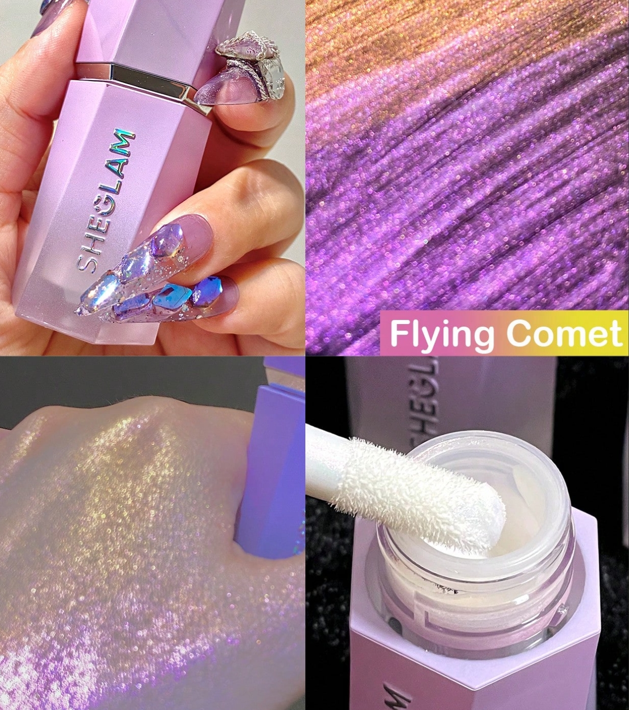 Risplendi più del cosmo con l' illuminante liquido Chroma-Glow Bloom di SHEGLAM , studiato per offrire uno spettacolare effetto duochrome che cambia colore a seconda dell'angolazione della luce.