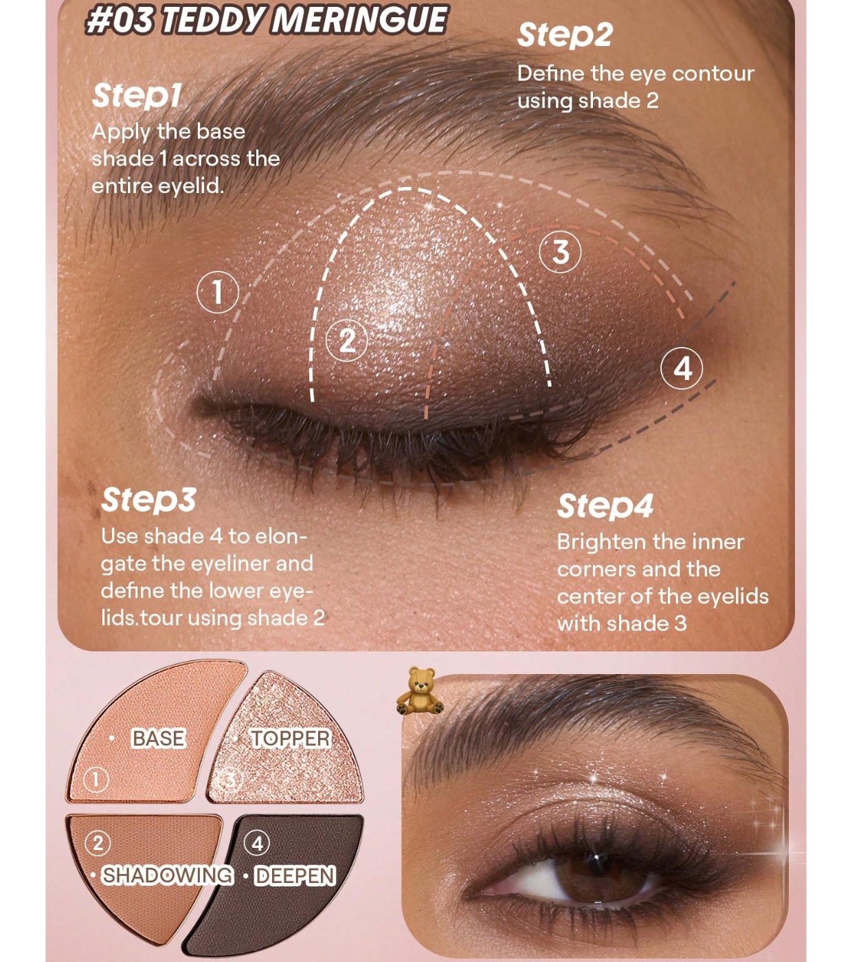 Piccola ma potente, questa mini palette di ombretti Daydreamer di SHEGLAM combina una tonalità effetto "wet look" scintillante con tre tonalità opache.