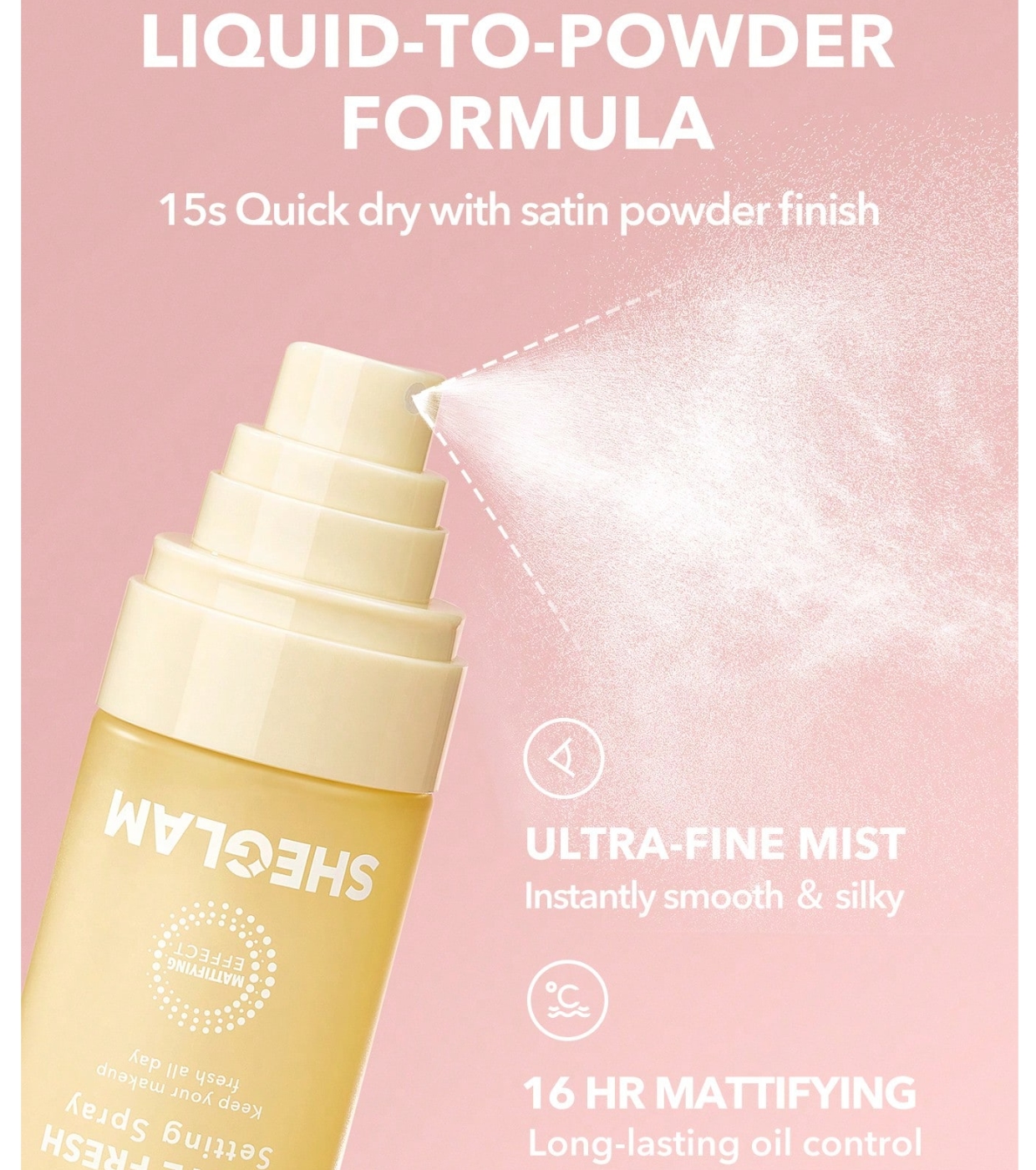Mantieni la tua pelle opaca tutto il giorno con lo spray fissante a lunga tenuta Matte Fresh di SHEGLAM , formulato per fissare il trucco controllando efficacemente l'eccessiva lucidità.