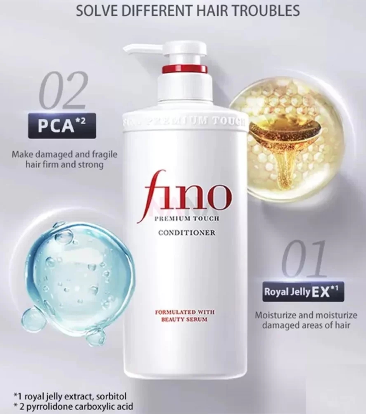 Questo balsamo Fino Premium Touch di Shiseido nutre e ripara i capelli danneggiati e secchi a causa dell'uso frequente di trattamenti chimici come la colorazione.