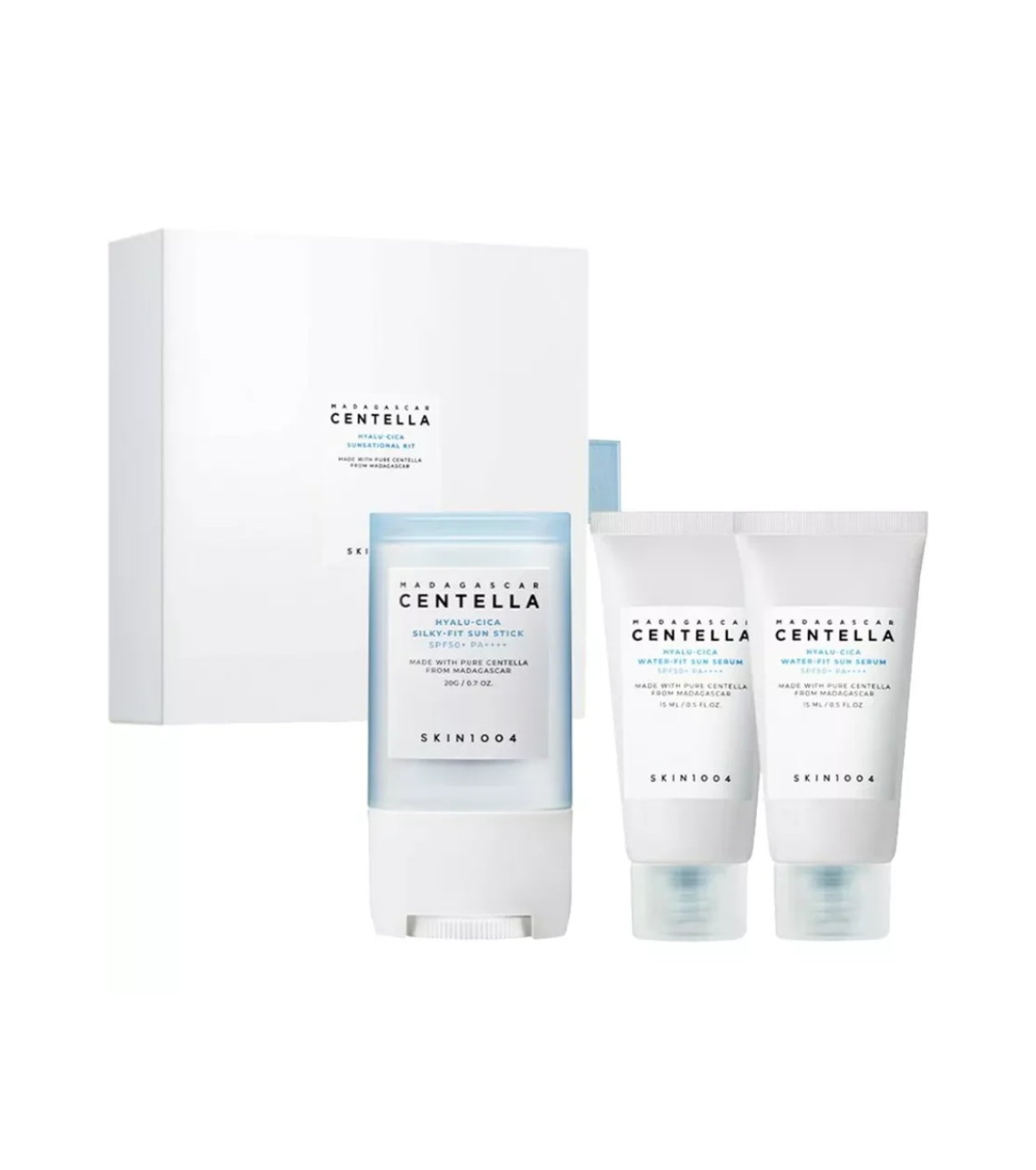Il Hyalu-Cica Sun Care Kit di SKIN1004 è un set completo di protezione solare idratante, ideale per la cura quotidiana della pelle e da portare sempre con sé grazie ai suoi pratici formati.