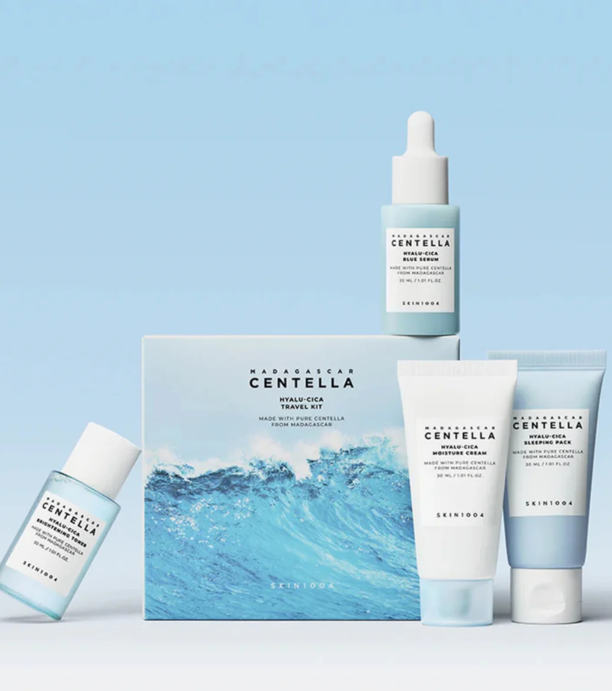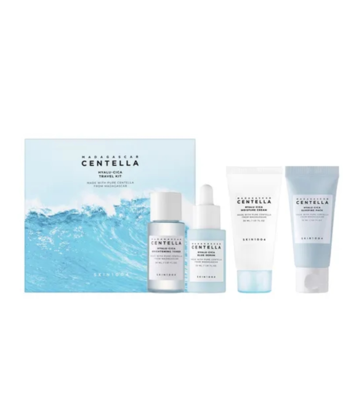 Scopri la routine completa di idratazione e calma con il Madagascar Centella Hyalu-Cica Travel Kit di SKIN1004 , un pratico mini set ideale per viaggiare o per provare la linea.