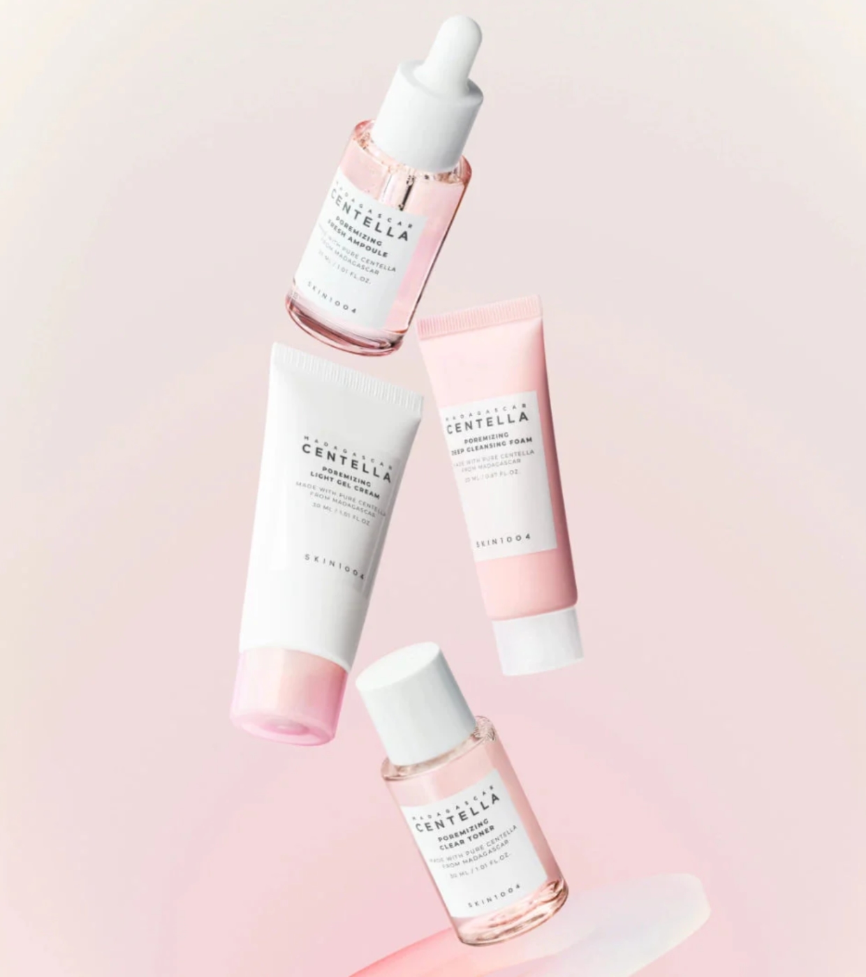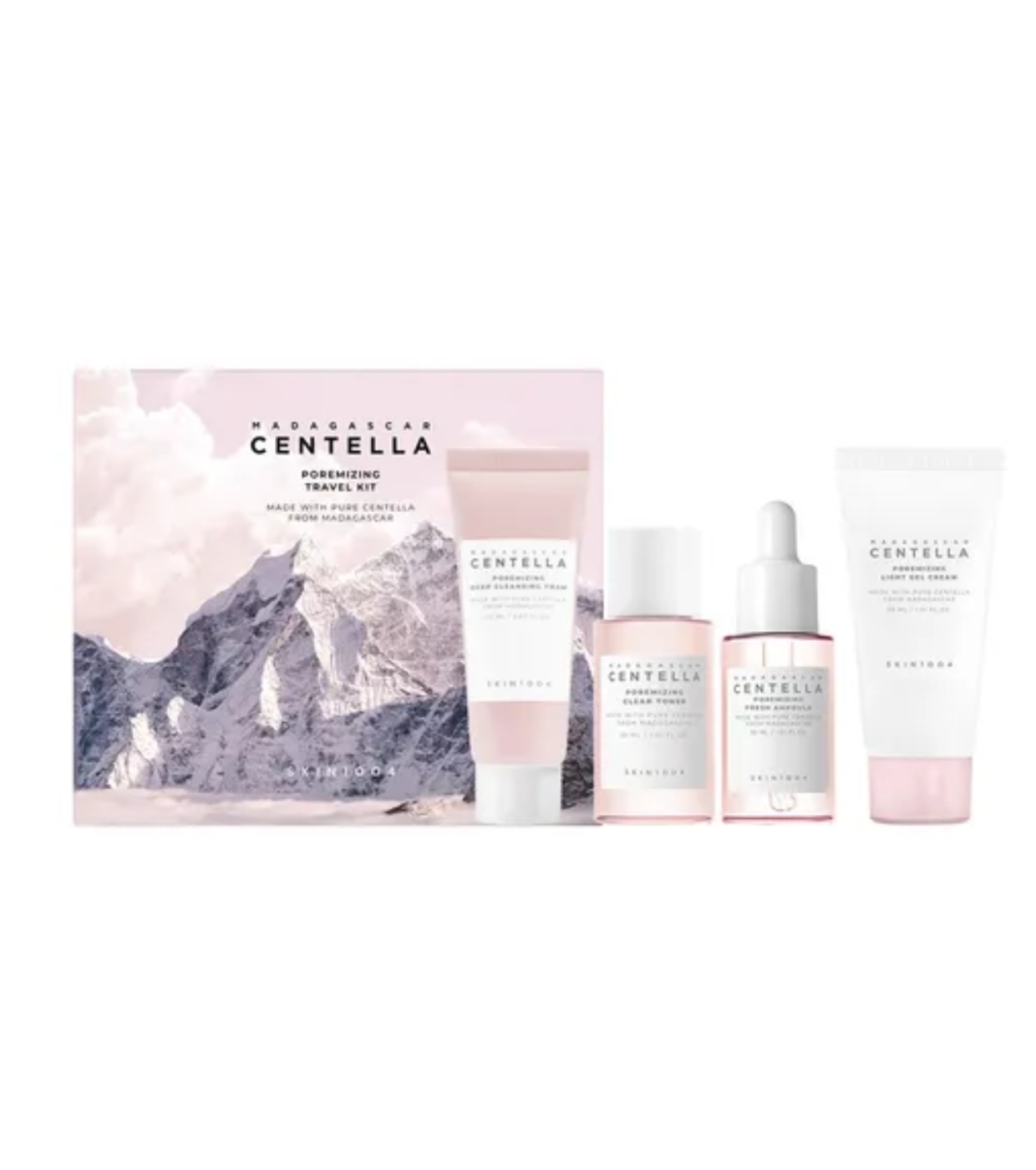 Scopri una routine completa per purificare la tua pelle e minimizzare la visibilità dei pori con il Madagascar Centella Poremizing Travel Kit di SKIN1004 .