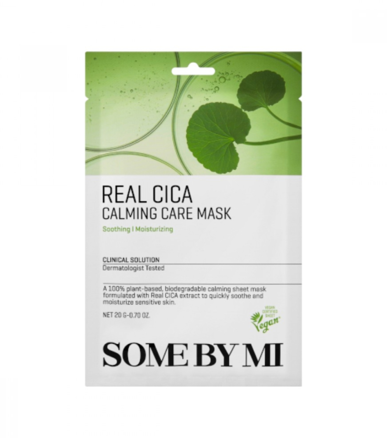 Maschera viso vegana formulata con estratto di centella asiatica che fornisce un trattamento lenitivo alla pelle irritata.