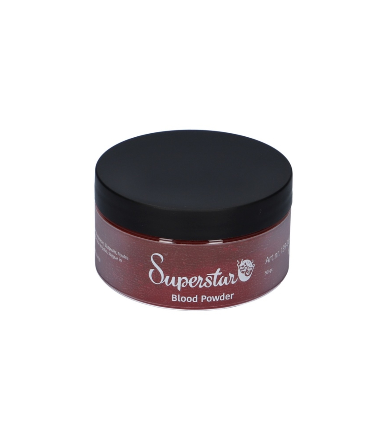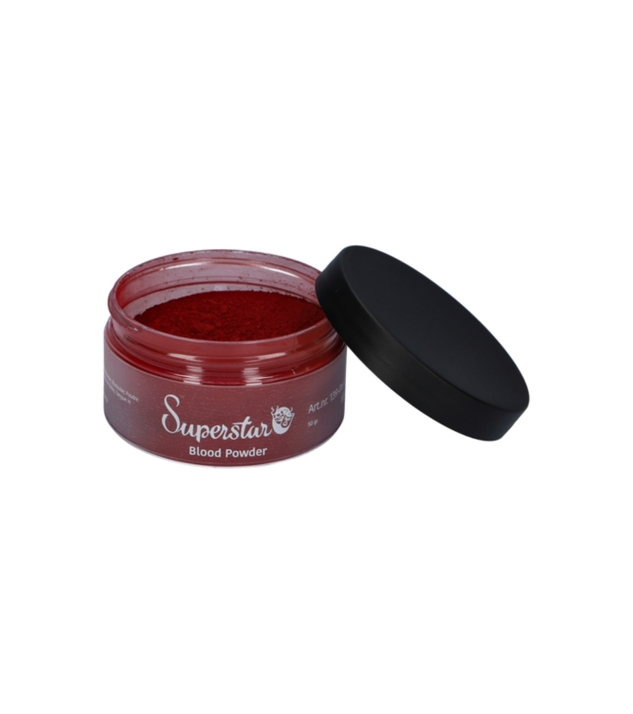 Superstar La polvere di sangue artificiale è il prodotto ideale per ricreare effetti di sanguinamento attivo (arterioso) nel trucco artistico, nella caratterizzazione e negli effetti speciali.