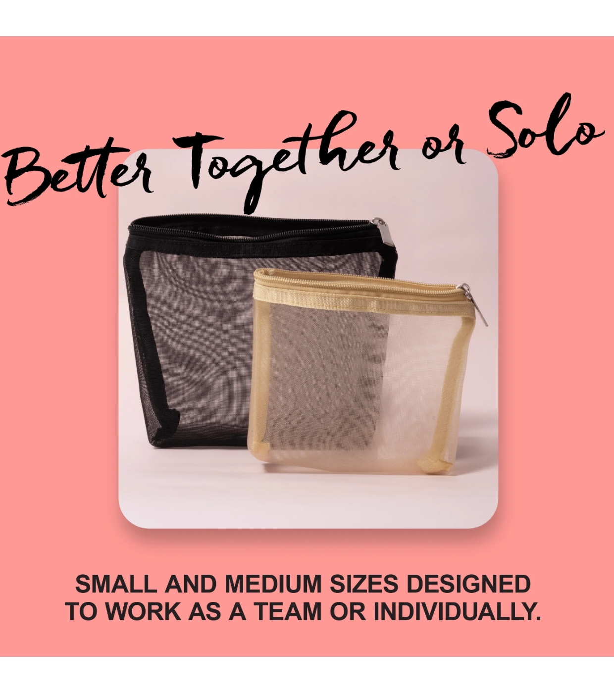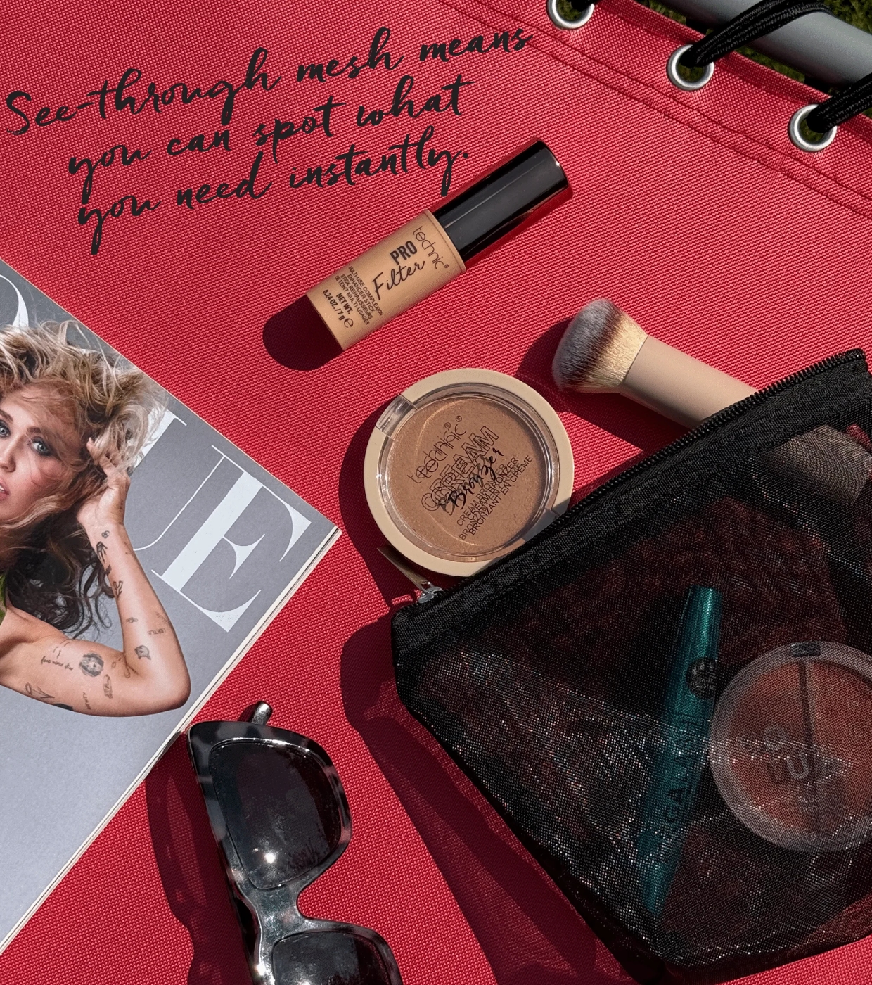Realizzati in rete traspirante e trasparente, non sono solo eleganti ma anche pratici: ti permettono di vedere e trovare facilmente il tuo rossetto, illuminante o eyeliner preferito senza doverlo cercare.