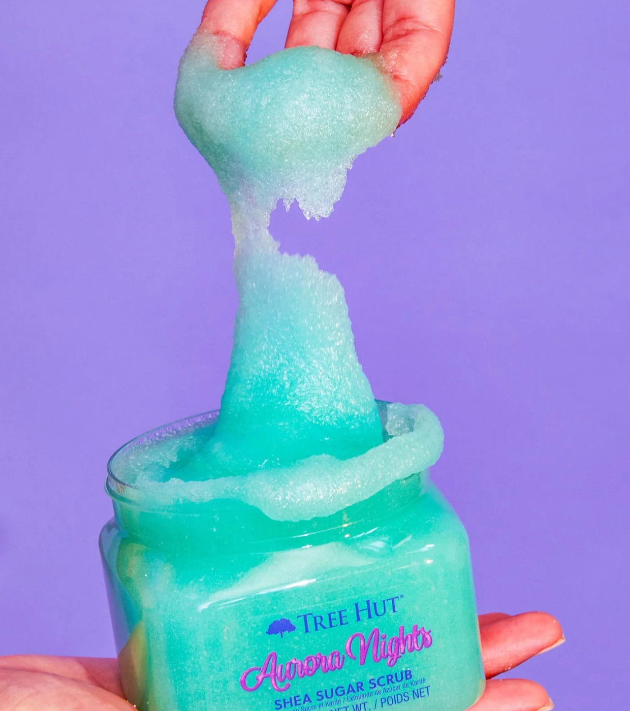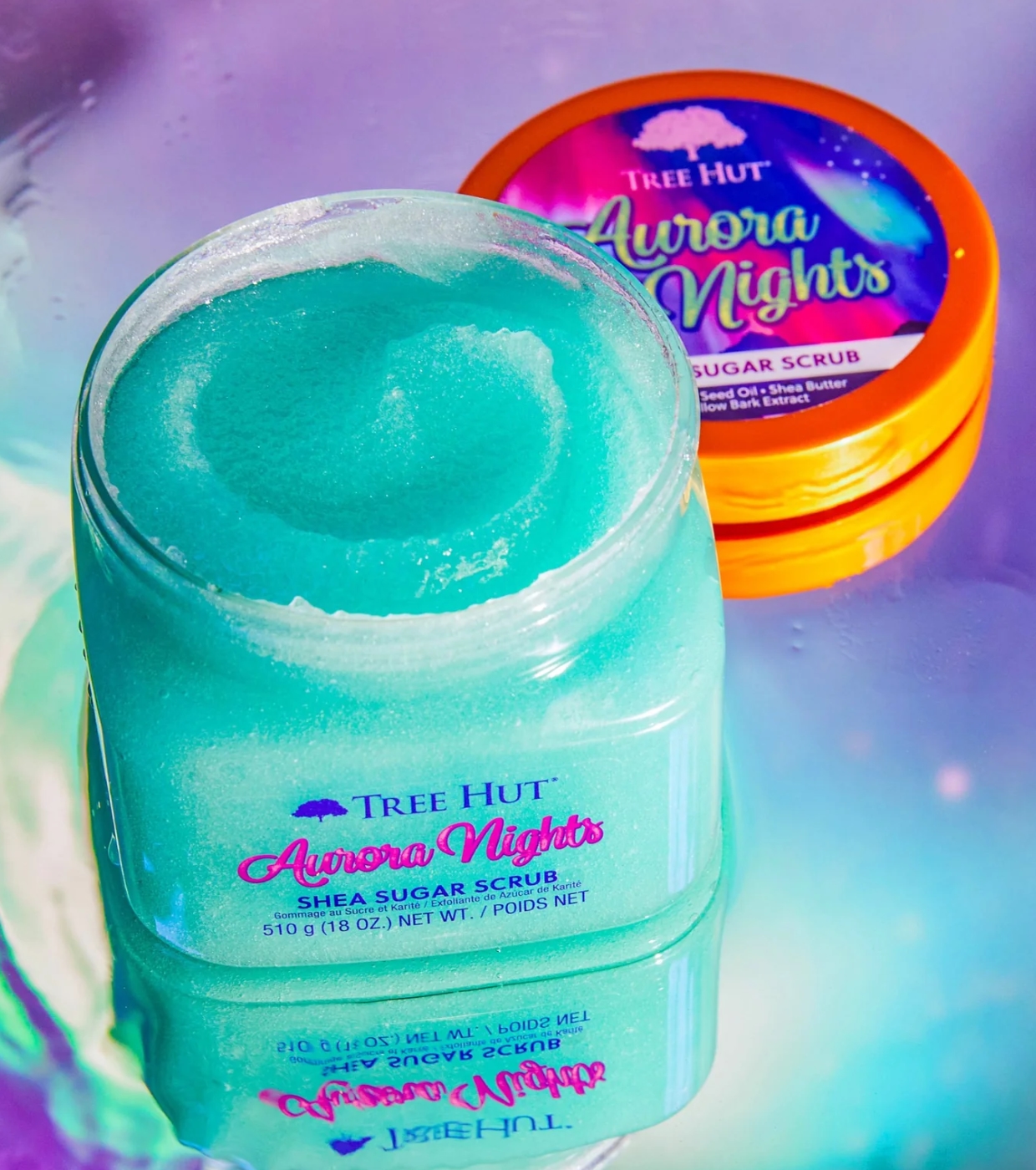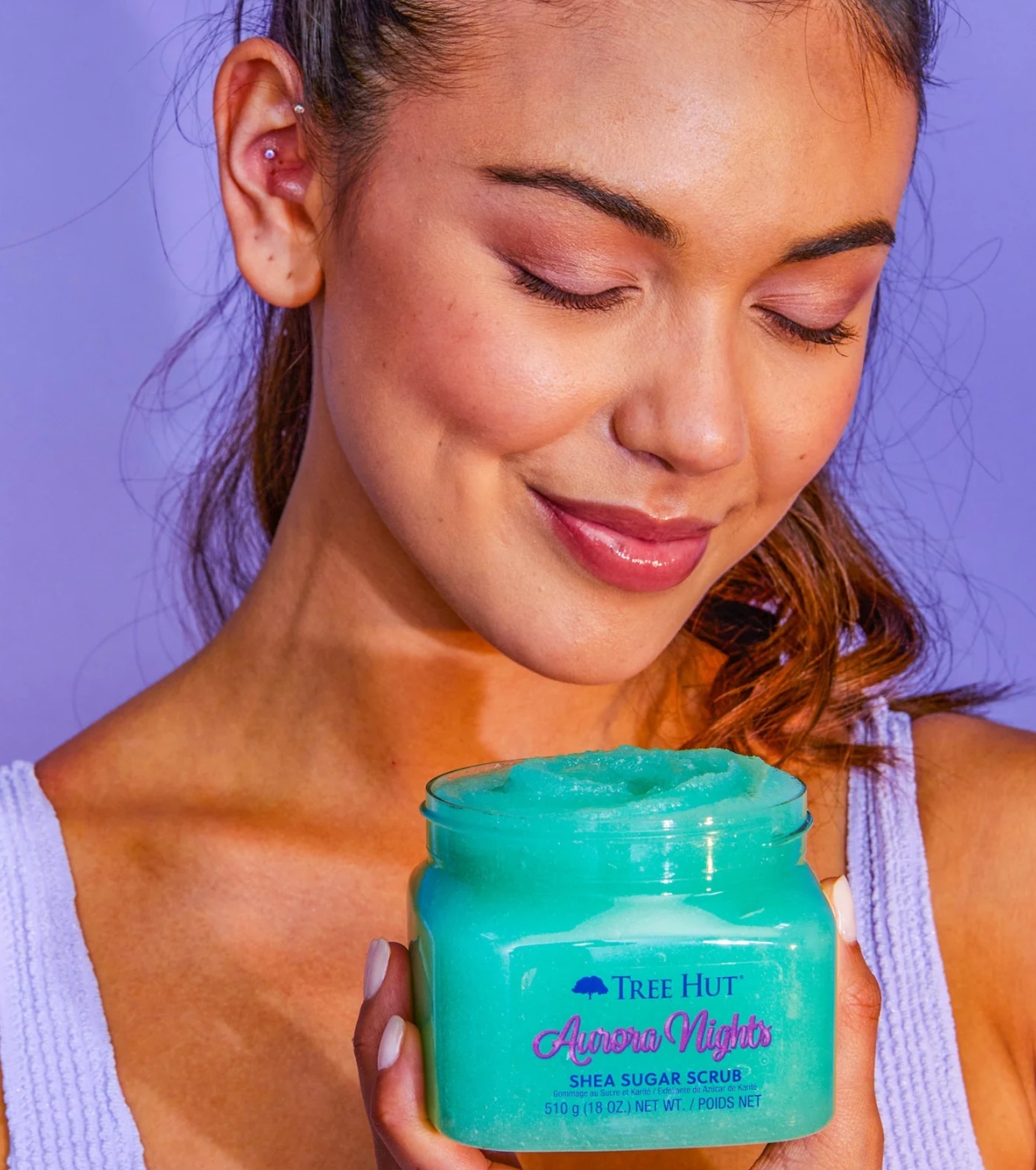 Migliora la tua routine di doccia e trasforma la tua pelle con lo scrub corpo Aurora Nights di Tree Hut .