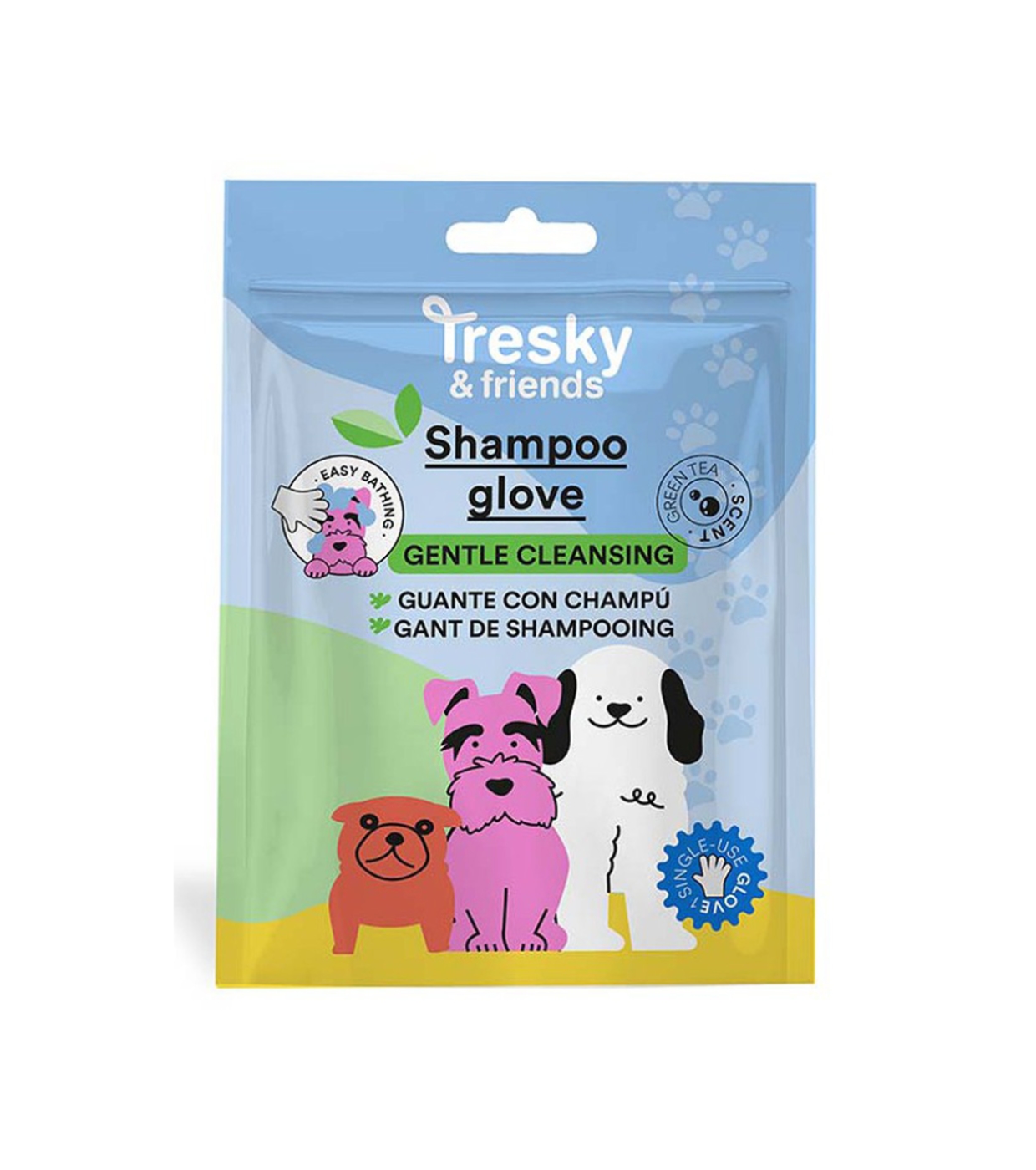 Il guanto per shampoo TRESKY & FRIENDS è una soluzione pratica pensata per semplificare l'igiene quotidiana di cani e gatti, combinando pulizia e massaggio in un unico semplice gesto.