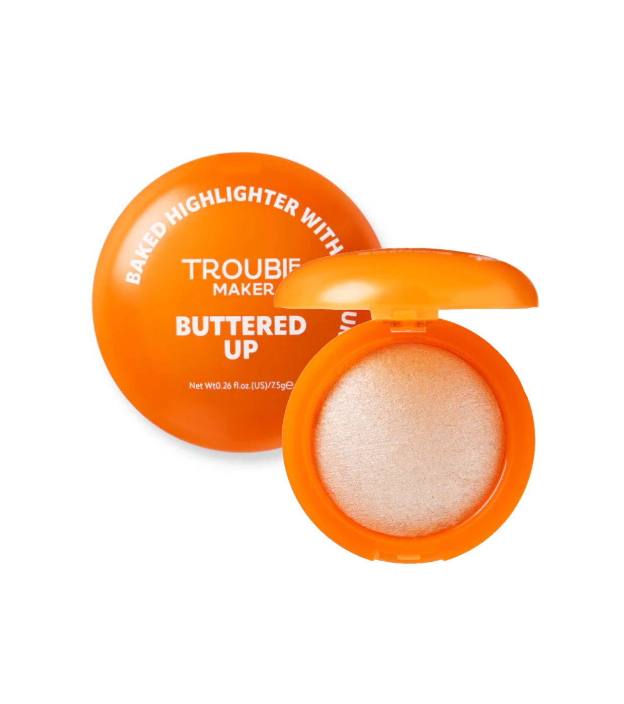 Il Buttered Up Baked Highlight di Trouble Maker è un illuminante cotto che dona alla pelle un aspetto caldo, morbido e luminoso, con una finitura burrosa e setosa che si fonde perfettamente con il viso.