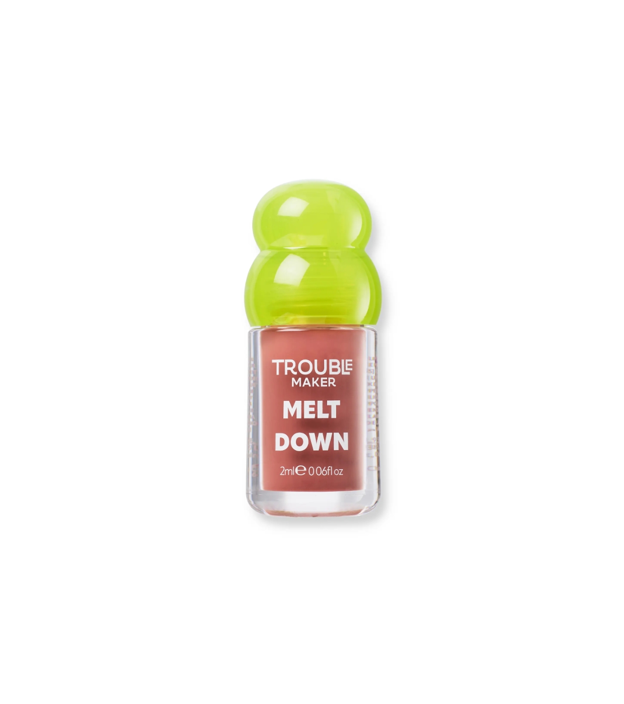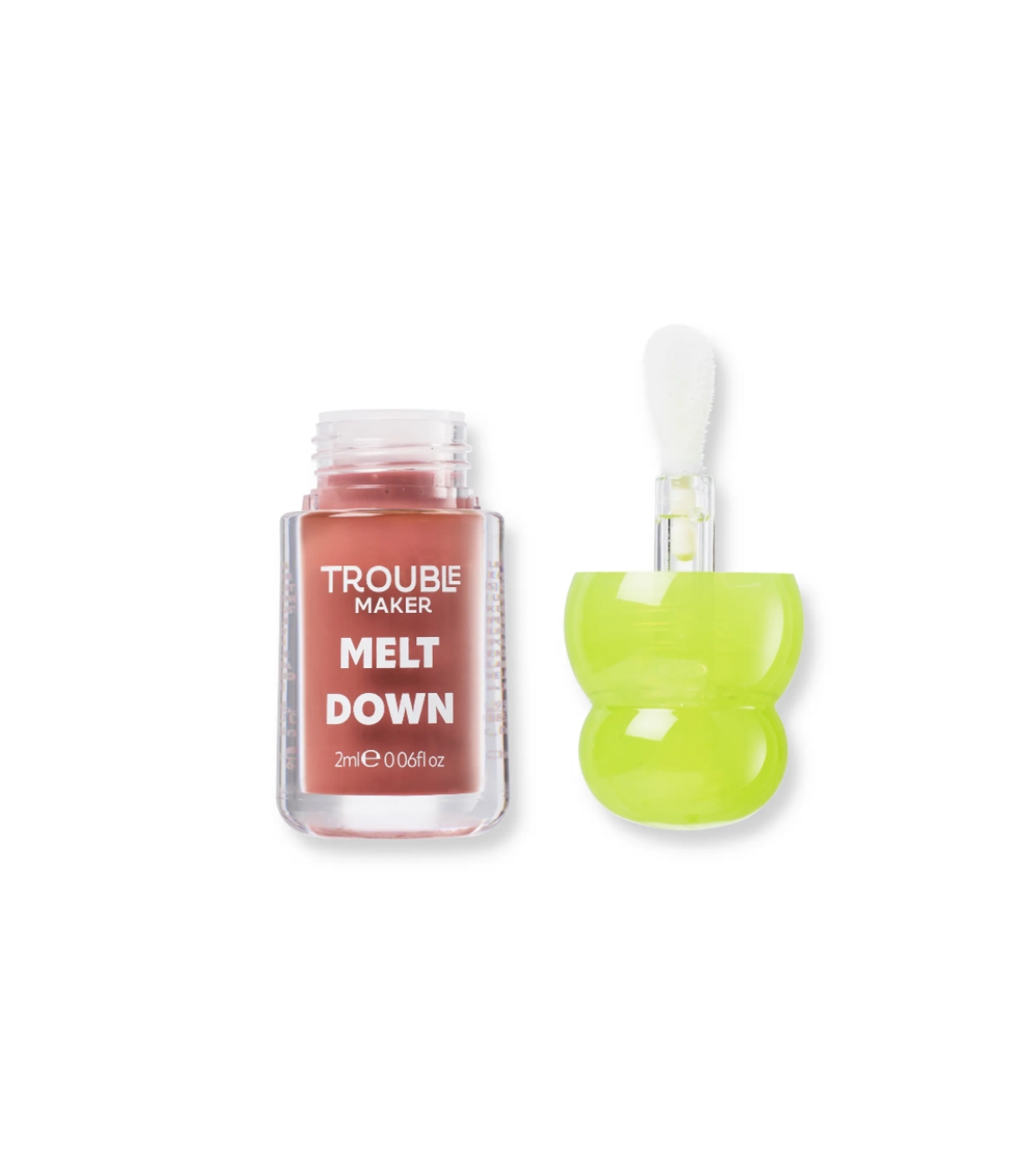 Melt Down Lip Oil di Trouble Maker è pura cura di sé in un tubetto: un'irresistibile combinazione di nutrimento, lucentezza e morbidezza per labbra irresistibili.