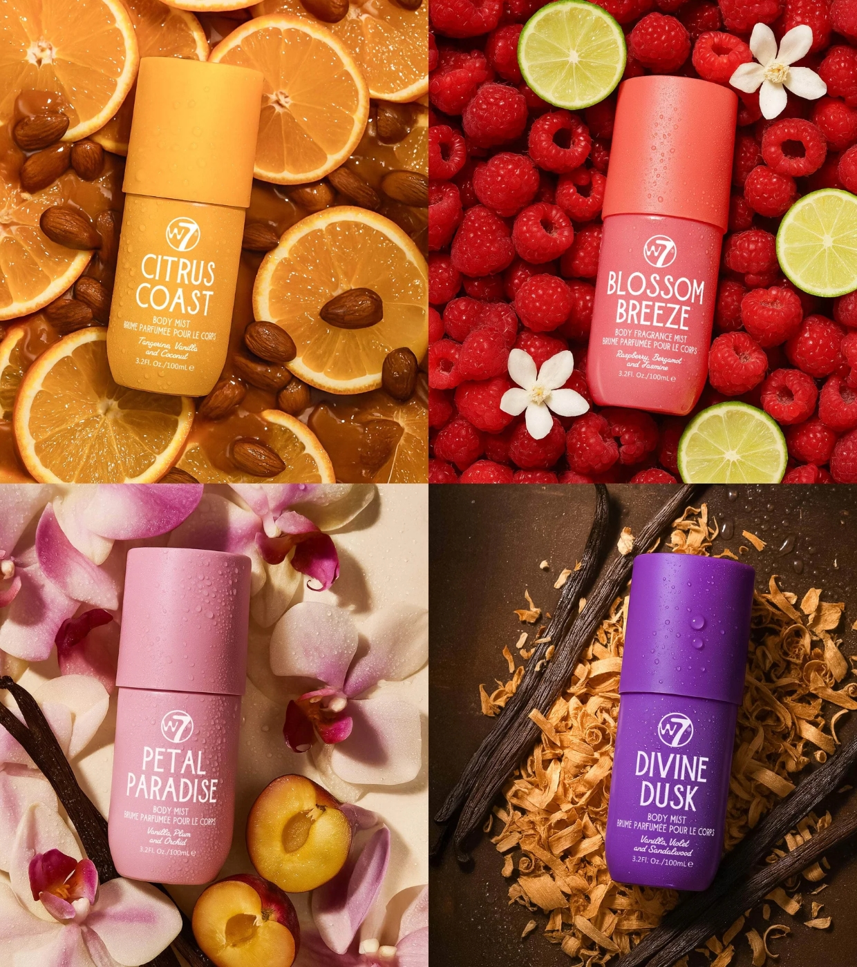 w7 Gli spray corpo sono l'alleato perfetto per rinfrescarsi e profumarsi in ogni momento della giornata.
