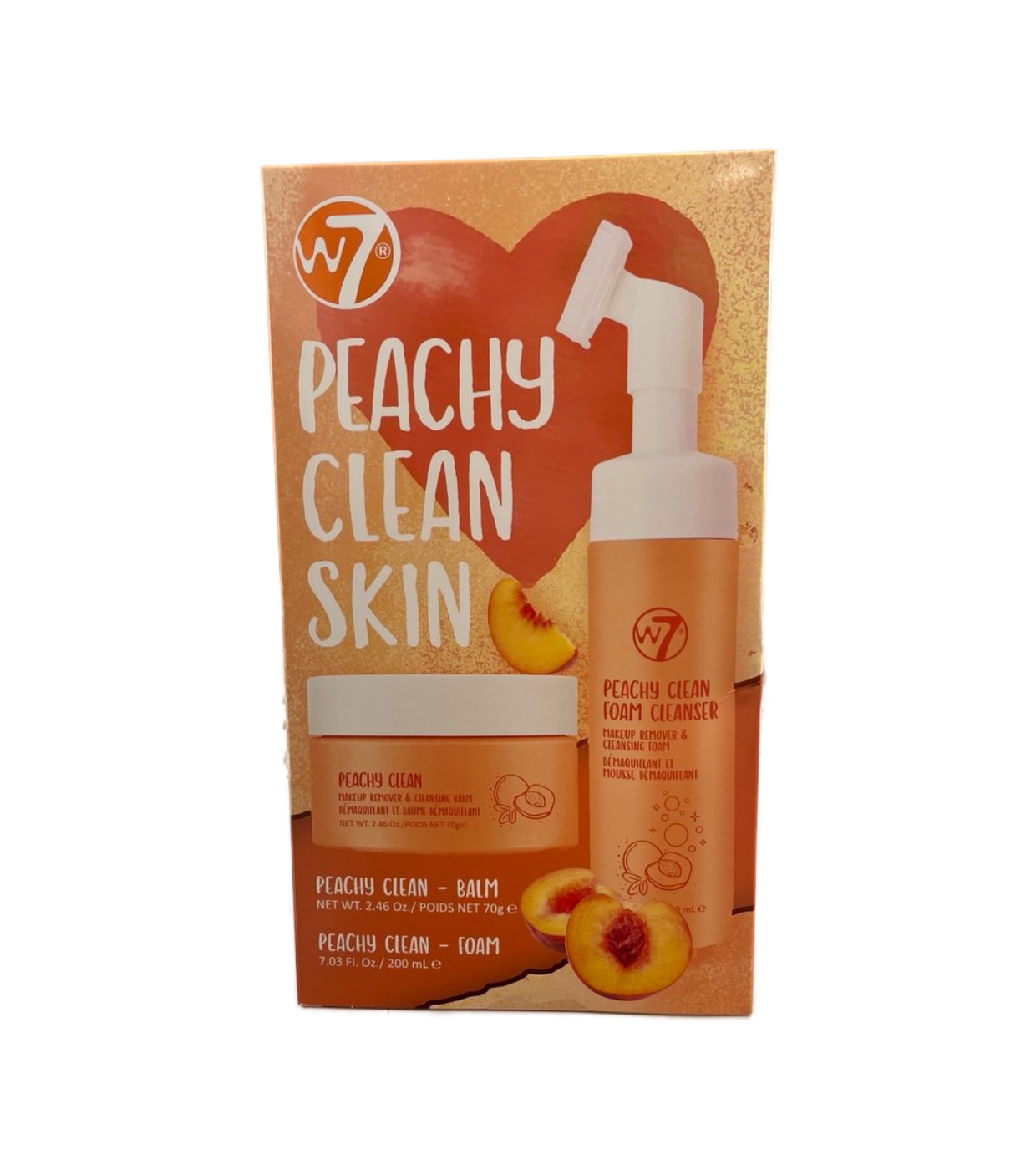 Il set detergente doppio W7 Peachy Clean Skin riunisce due prodotti essenziali per una pelle pulita, fresca e morbida: il balsamo detergente Peachy Clean e la schiuma detergente Peachy Clean.