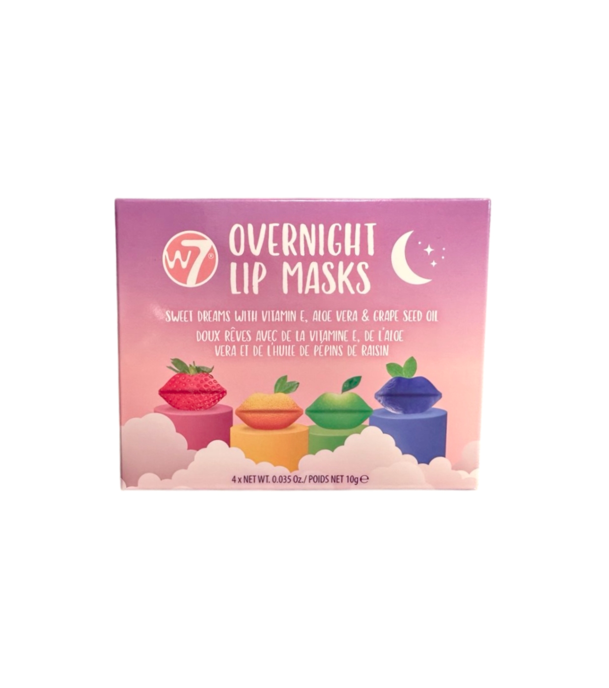 Di' addio alle labbra secche con il W7 Overnight Lip Masks Set , una confezione da 4 maschere per la notte arricchite con vitamina E, aloe vera e olio di vinaccioli.