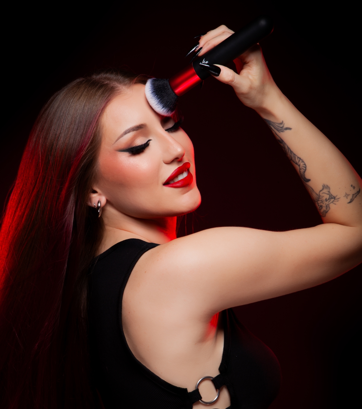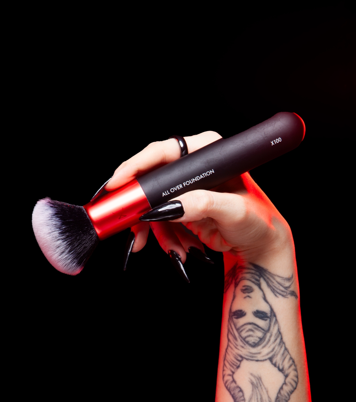 La disposizione e la quantità delle setole evitano sprechi di prodotto. È dotato di un'impugnatura antiscivolo e di una ghiera cromata rosso brillante per un look accattivante.