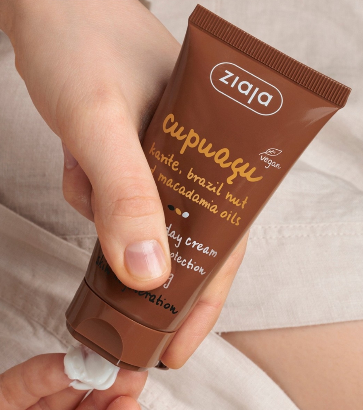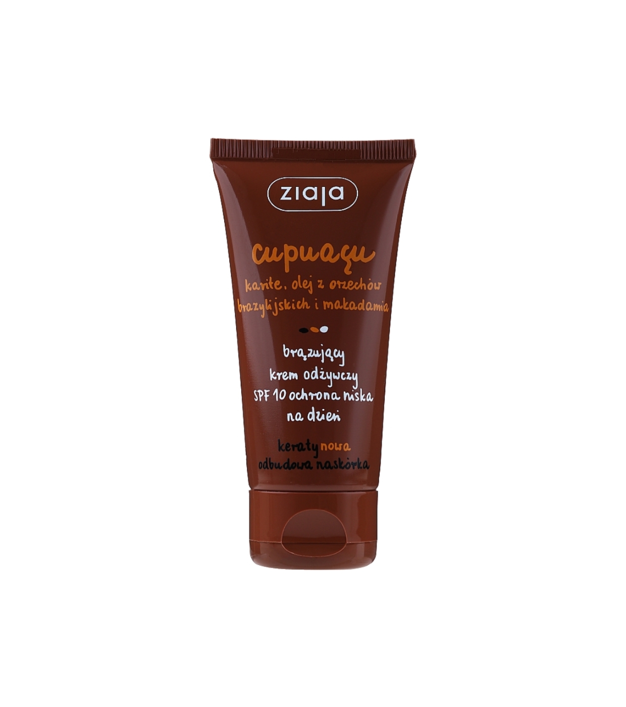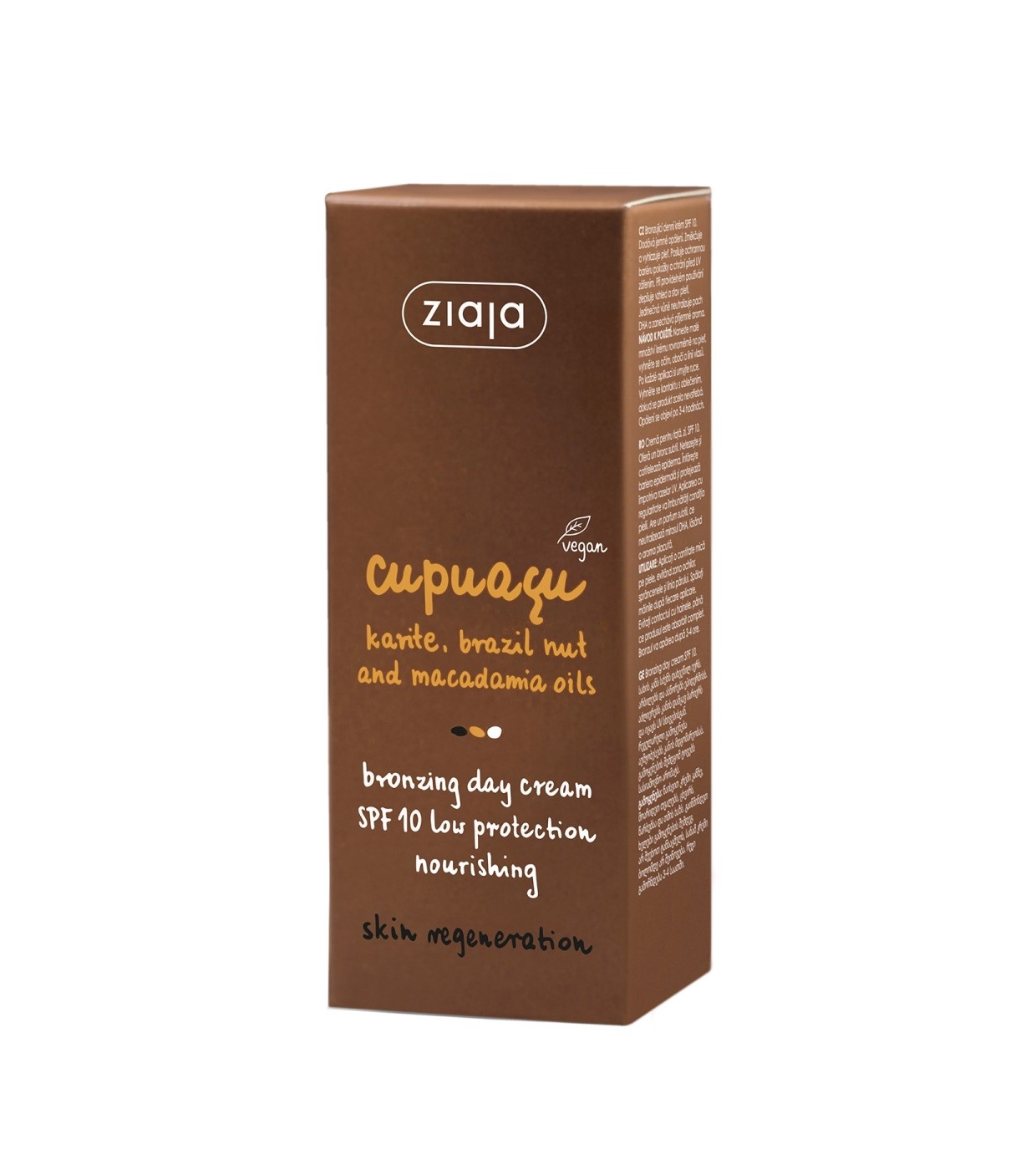 La crema autoabbronzante per il viso SPF10 Cupuaçu di Ziaja è leggera, si assorbe rapidamente e offre una protezione UVA/UVB SPF10 (protezione bassa).